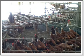 太陽の光が差し込み、自然の風が通り抜ける解放的な鶏舎で健康に育てられている親鶏。